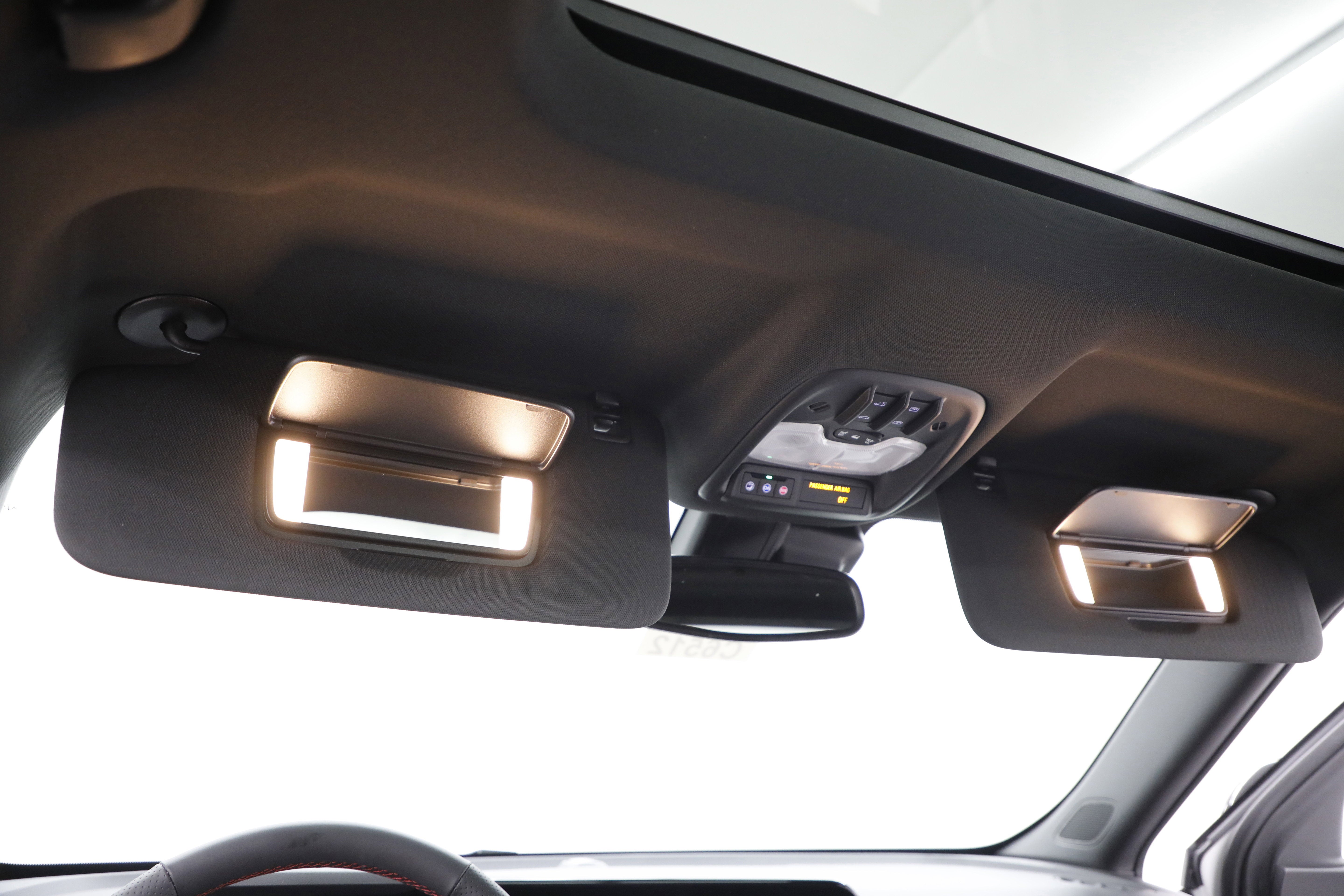 - Driver and front passenger sliding visors with covered illuminated vanity mirrors