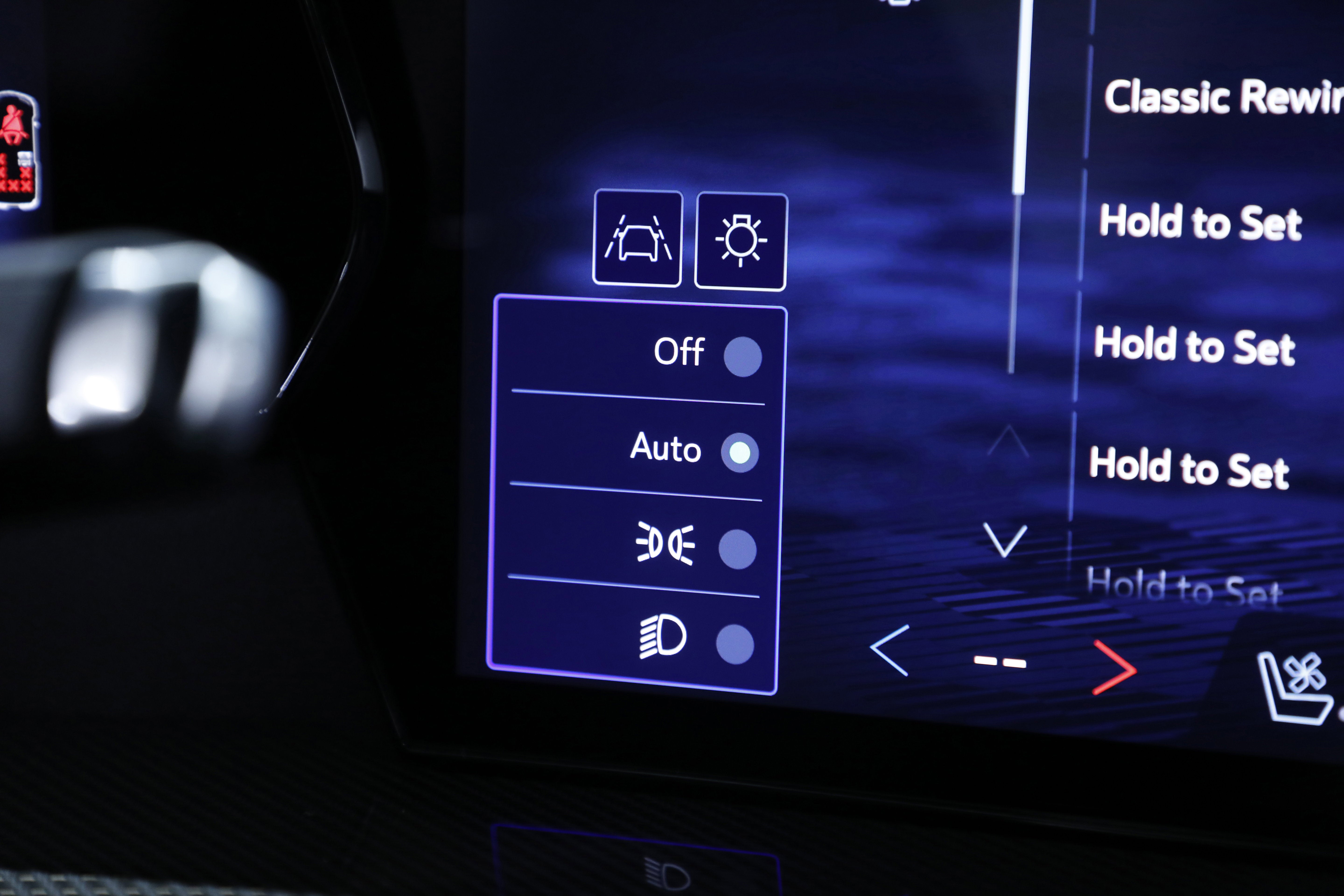 - The driver auto-dimming feature automatically adjusts the driver-side rearview mirror when it senses bright light from behind