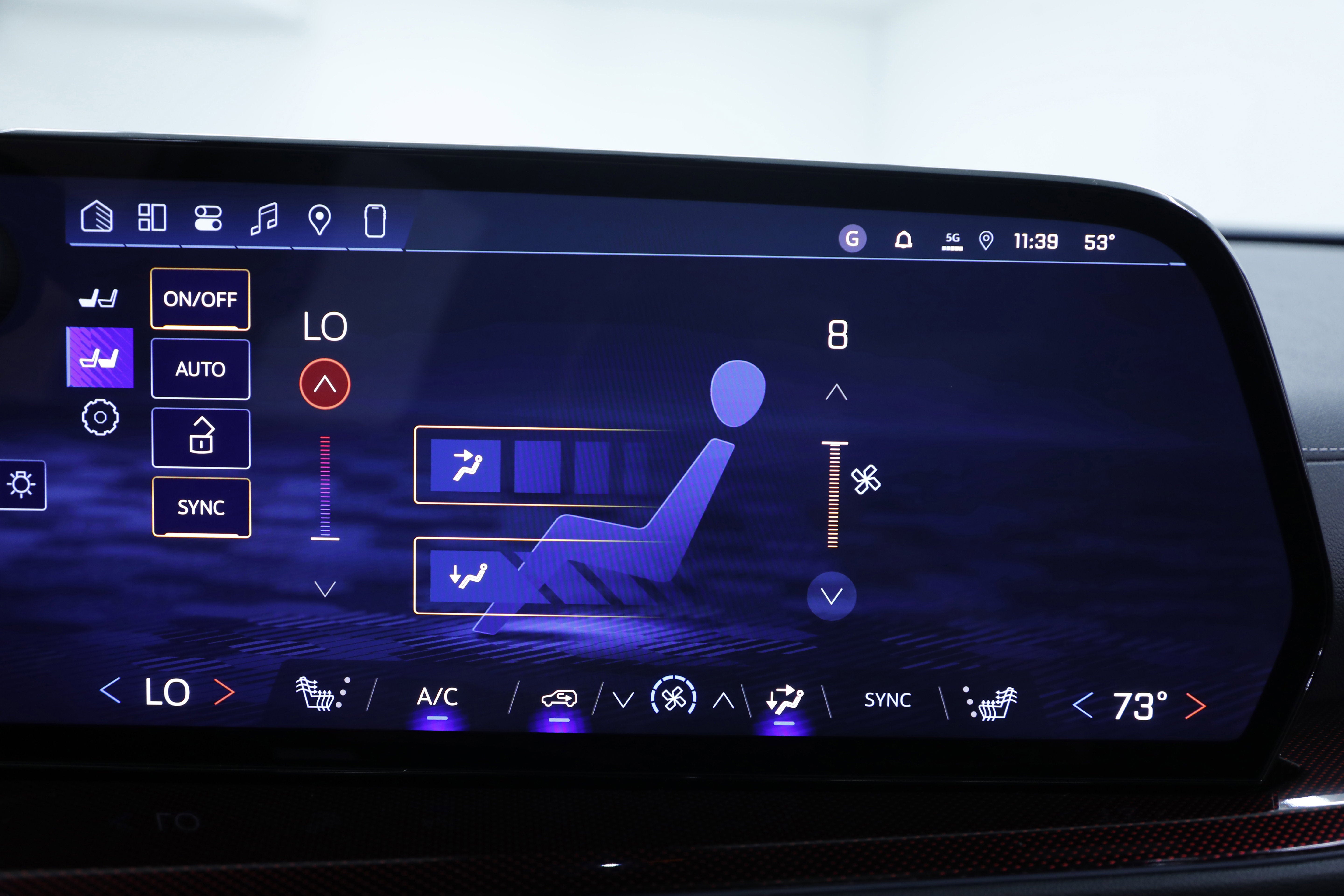 - Auxiliary controls in the rear of the cabin include air delivery mode and temperature up/down settings