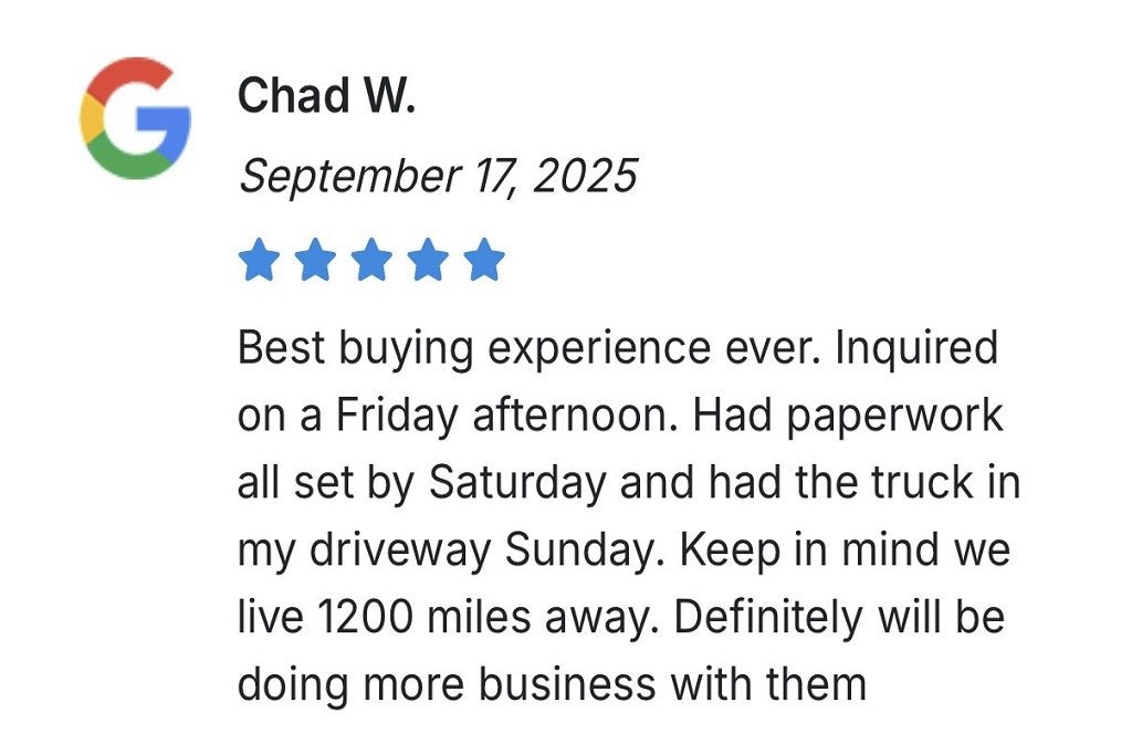 Reach out today and see how buying a car should be - fun and easy! Feel confident in your purchase with our 150 point inspection process. Then enjoy working with our friendly sales and finance team who can schedule fast home delivery regardless of your location! Check thousands of happy customer testimonials from all over the United States in the "About Us" section on the main menu. Want to purchase in person? We'd love to see you! We are conveniently located in Clinton, MO, halfway between Kansas City and Springfield. And remember! We have no documentation fees, admin fees, or processing fees -- absolutely no fees here!