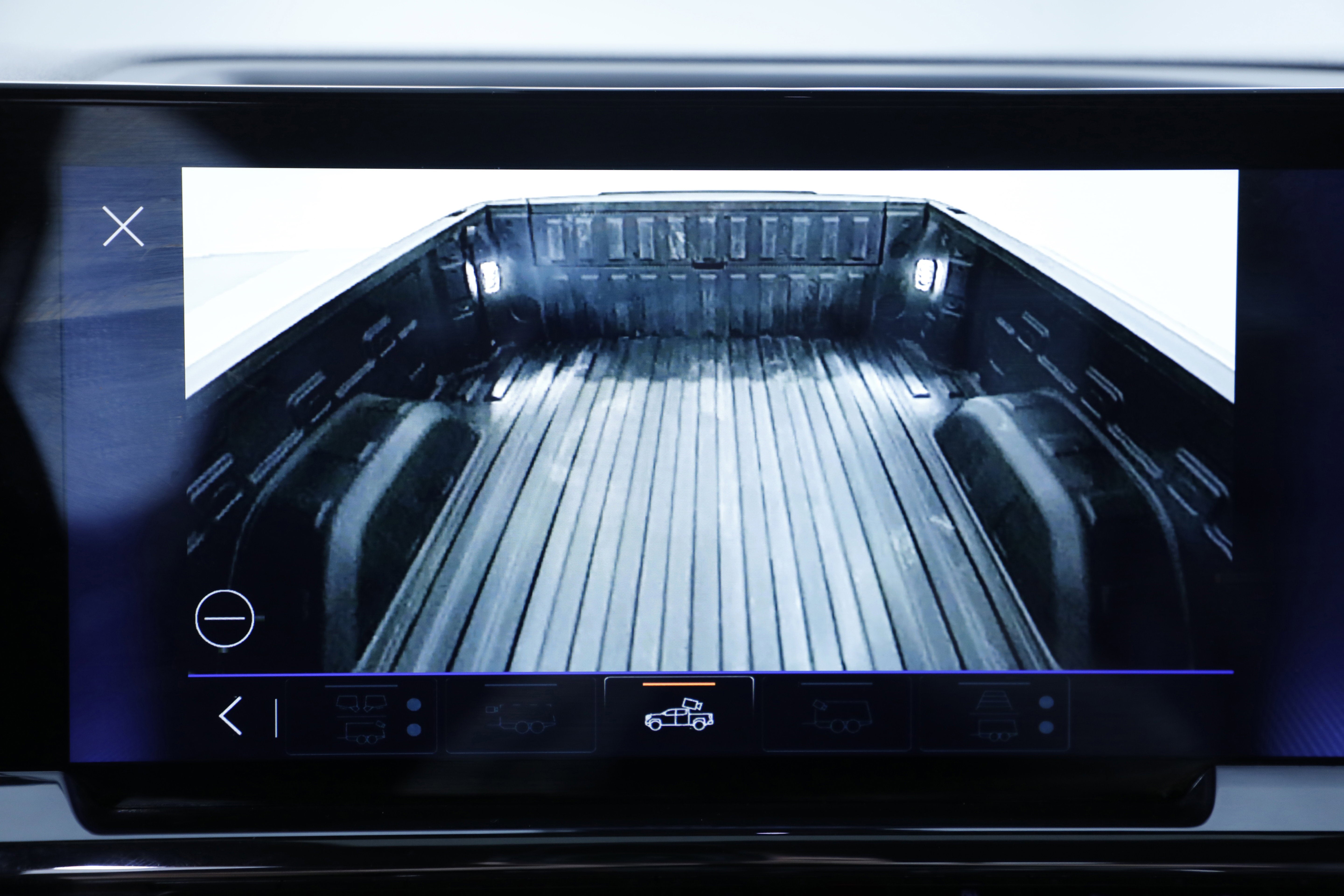 - Allows driver to see inside the cargo bed on the infotainment display to help with 5th wheel or gooseneck hitching and to check cargo