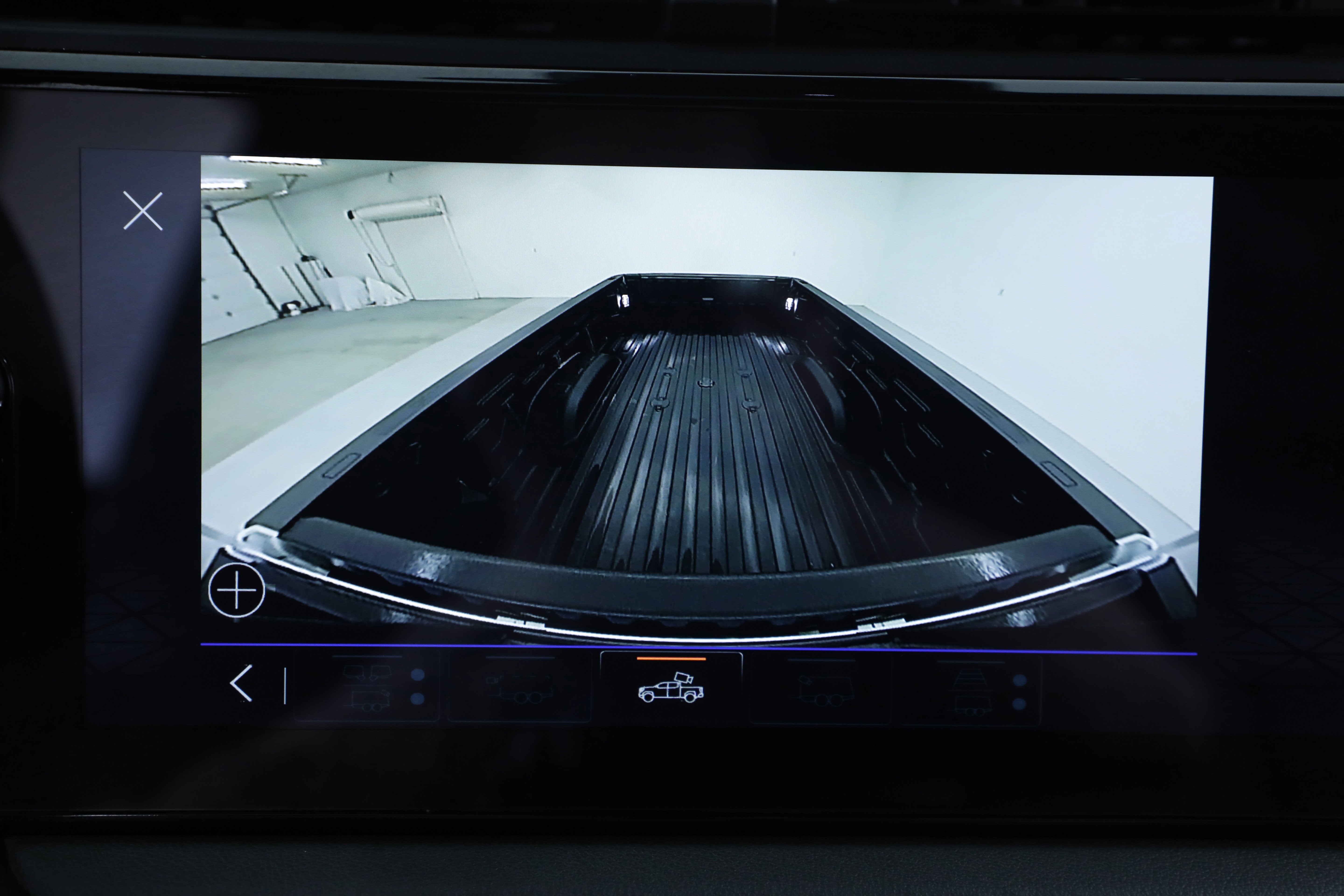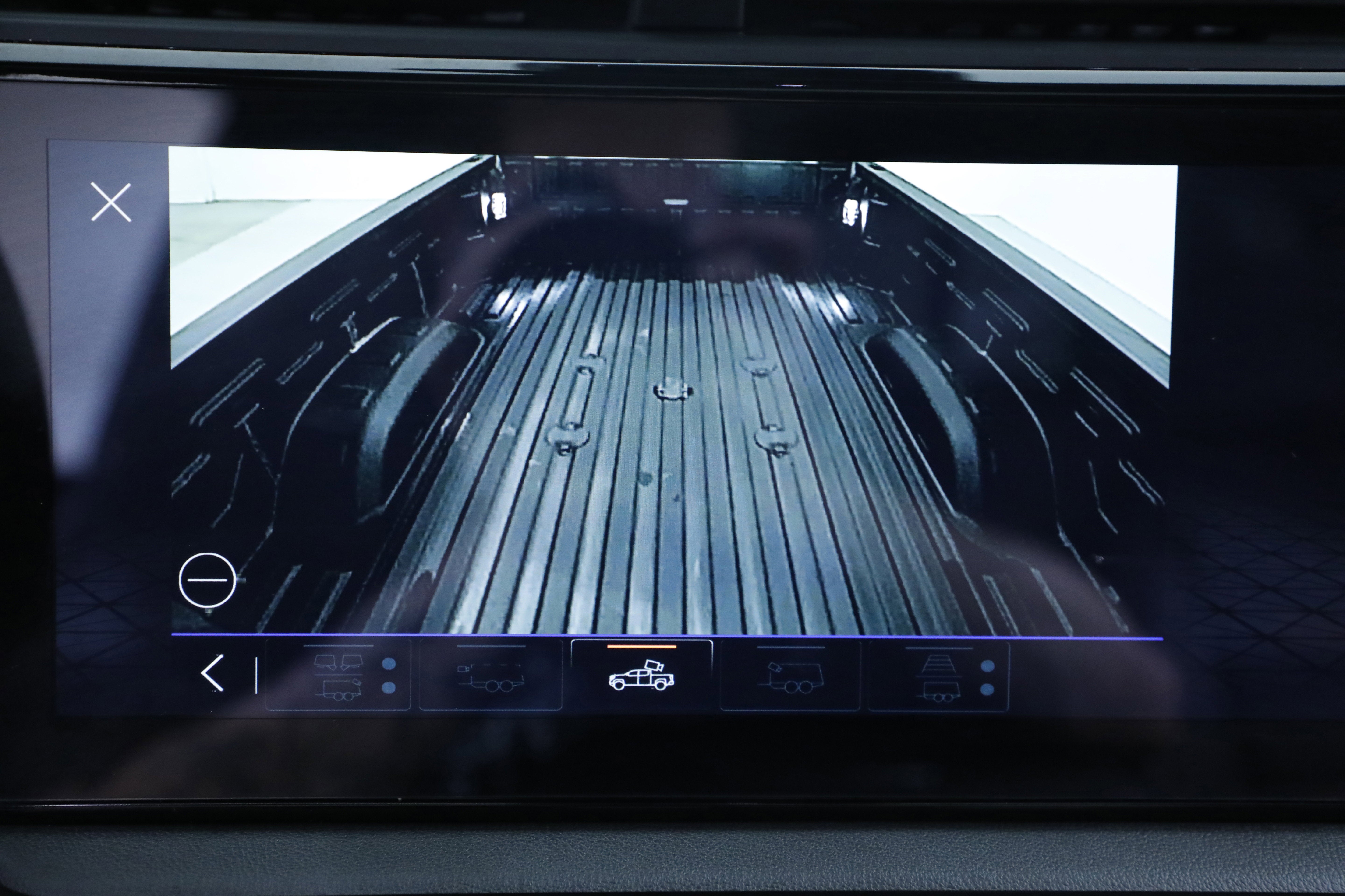 - Allows driver to see inside the cargo bed on the infotainment display to help with 5th wheel or gooseneck hitching and to check cargo